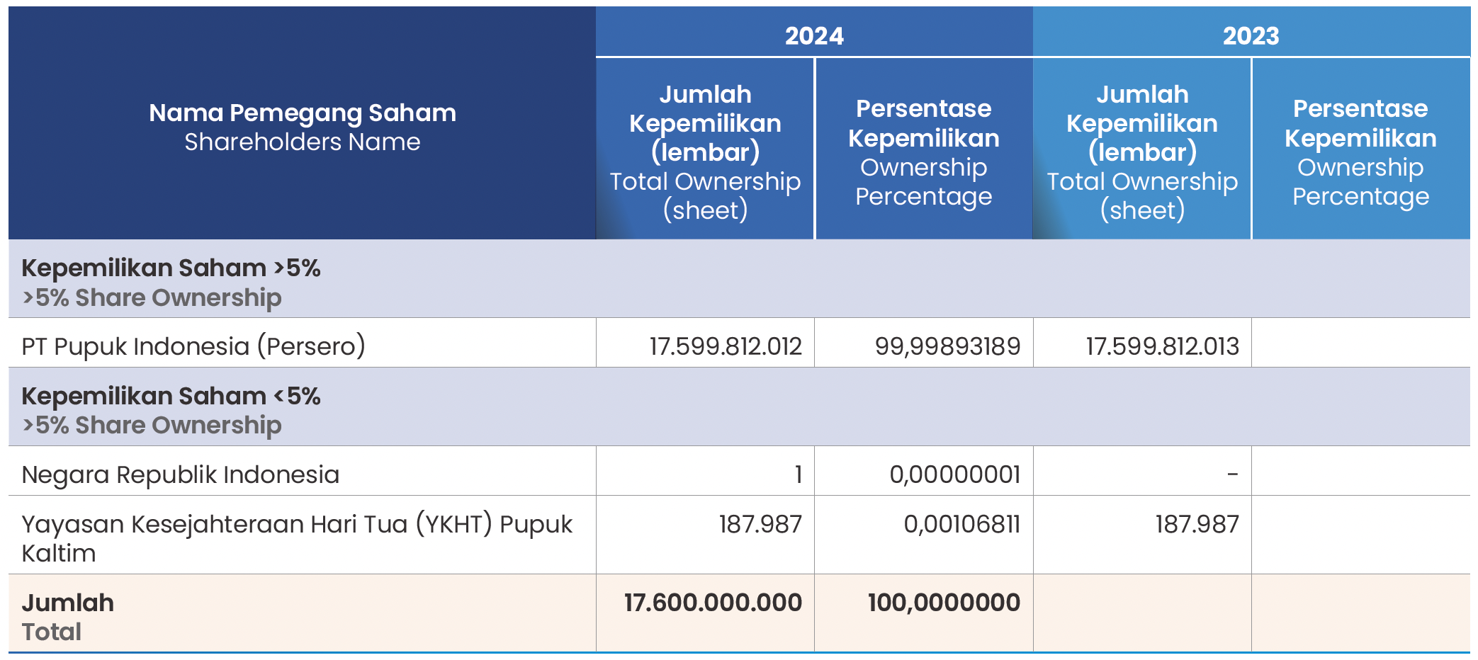 In 2024, there was a change in the Company's share ownership in accordance with the Deed dated December 4, 2024 concerning Dwiwarna Shares, so that the composition of Pupuk Kaltim Shareholders changed as follows: